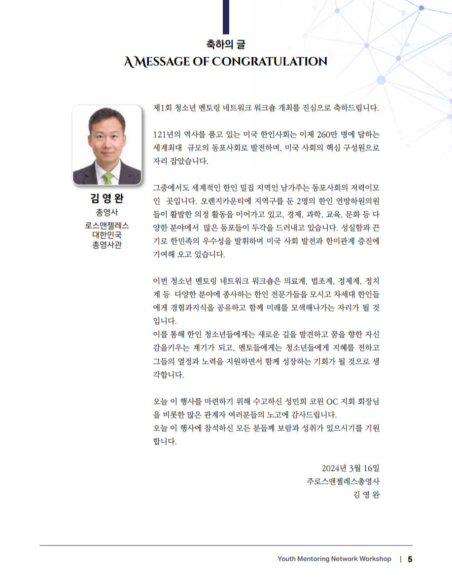 As an opportunity for Korean-American teenagers residing in the United States to engage in conversations and gather information from Korean-American professionals actively involved in mainstream American society, the event provides a platform for experts to share their experiences on how they studied and the paths they took to reach their current positions. Additionally, it aims to assist teenagers in finding directions for their future careers. During the seminar, mentors will address questions from the teenagers, offer guidance on career directions, and introduce guidelines and preparation processes for their respective fields.